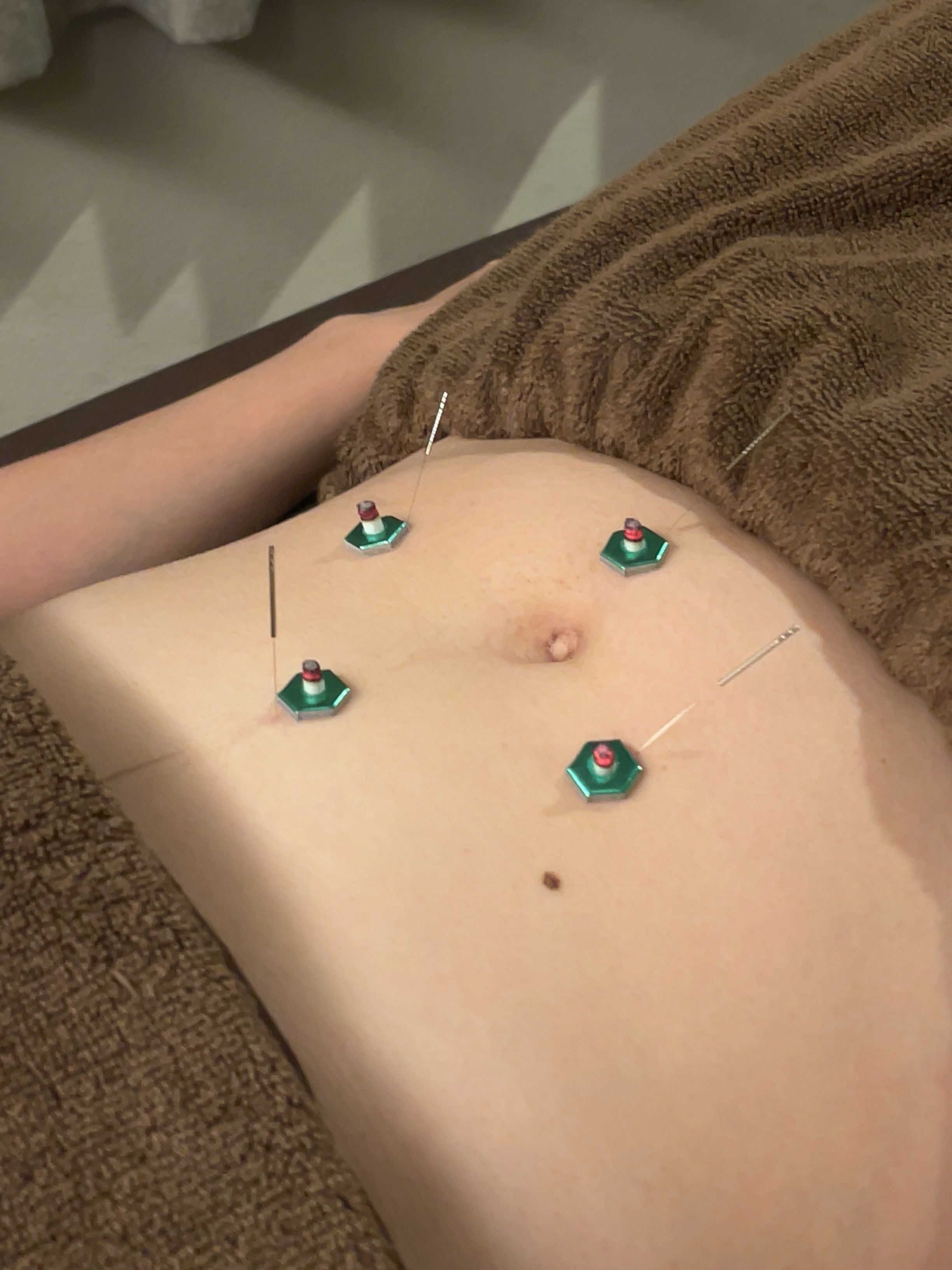 自律神経調整とストレス緩和を目的に、後頭部・背部・腹部の鍼施術を実施。