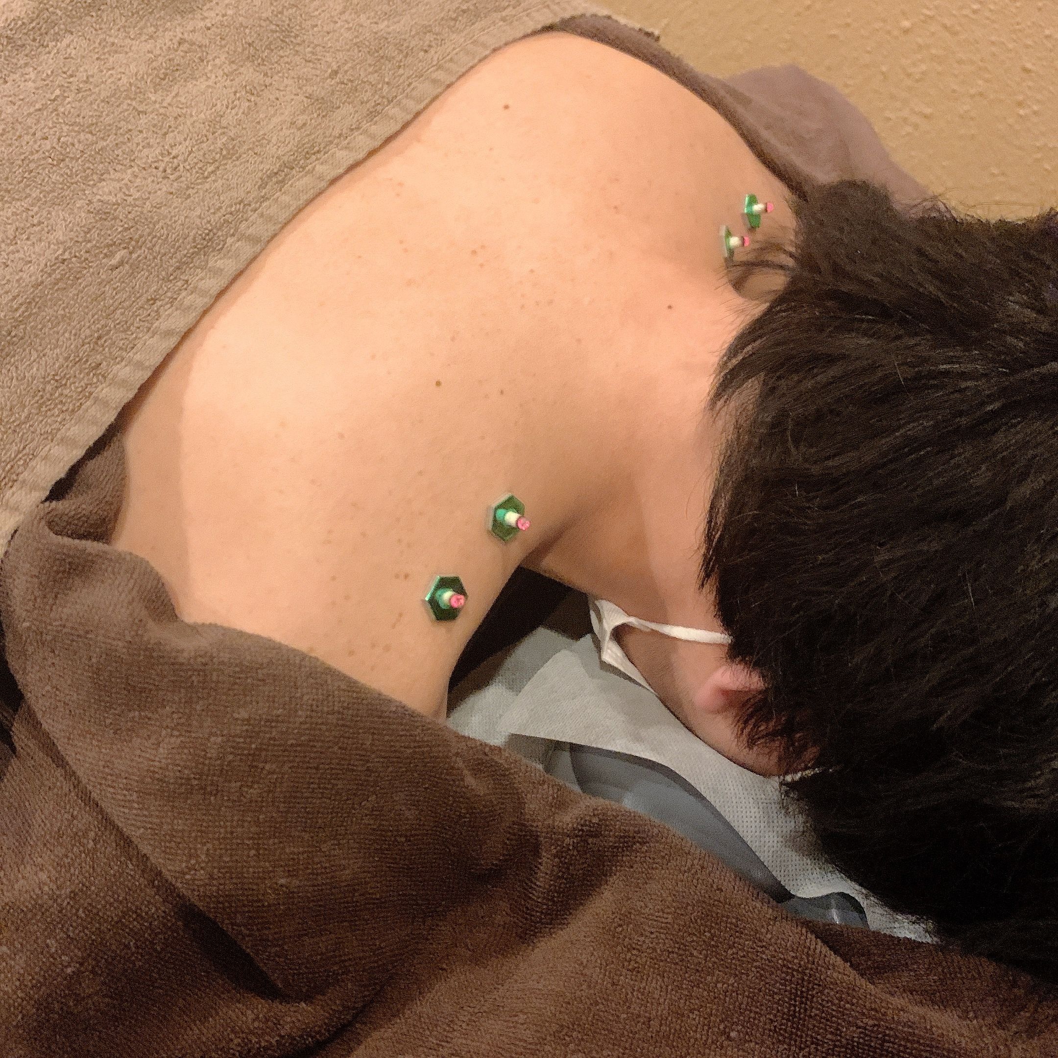 肩甲帯の可動性改善と自律神経調整を目的とした鍼施術を実施。