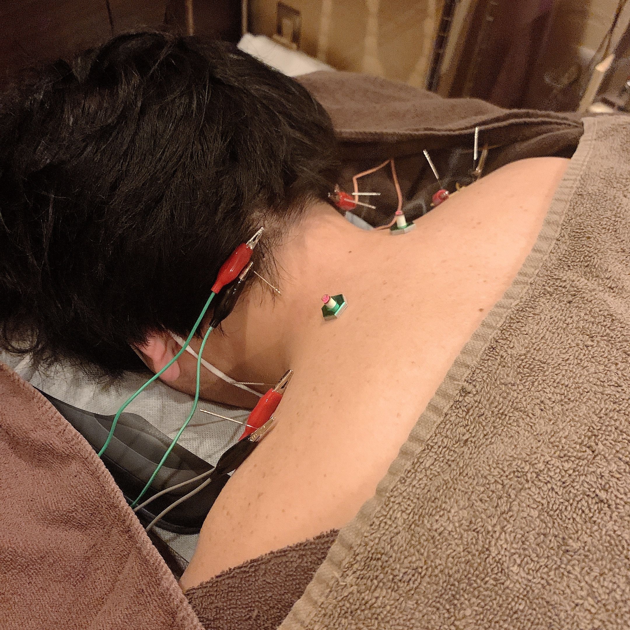 肩周囲と背部の緊張緩和を中心に鍼施術を実施。