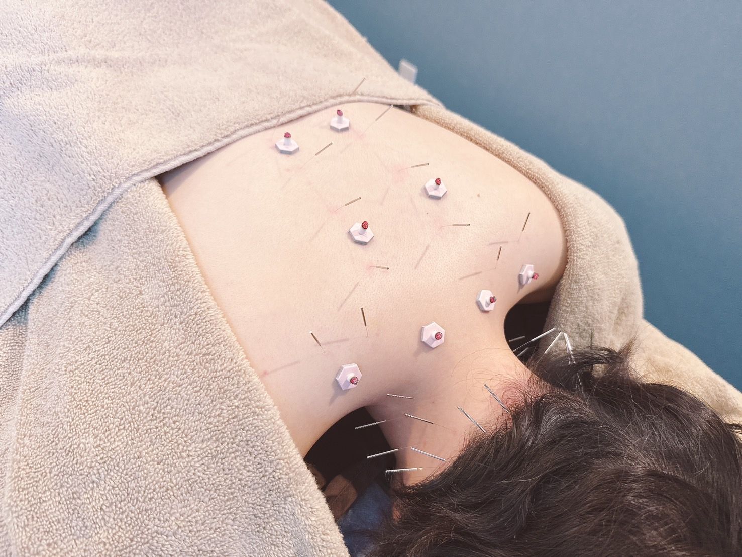 自律神経調整と全身の気血の巡り改善を目的に、首・背部・腹部を中心に鍼施術。