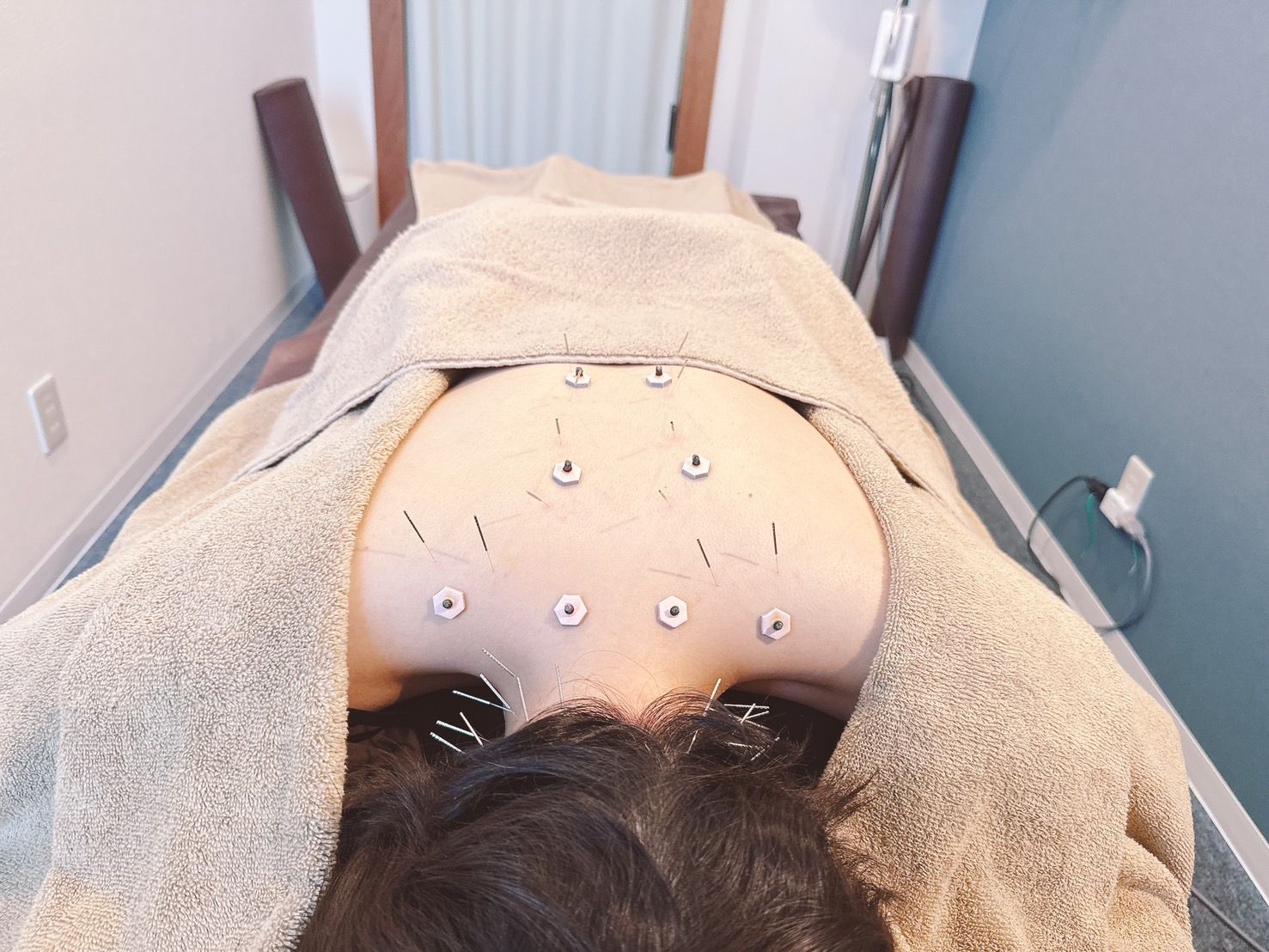 頚部・肩甲帯の緊張緩和と自律神経調整を目的に鍼施術を実施。