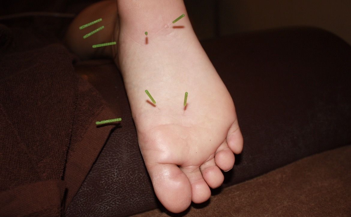 下腿・足底の緊張緩和と循環改善を目的に鍼施術を実施。