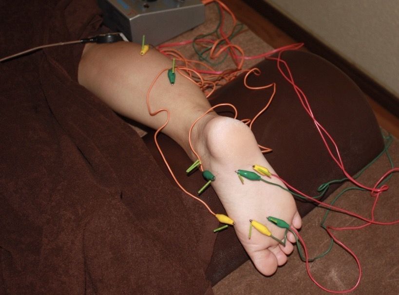 施術では、足底だけでなく、ふくらはぎ・アキレス腱・膝・骨盤周囲まで含めてアプローチします。必要に応じて、下腿部の循環改善を目的とした鍼通電(パルス)を併用します。炎症部位への負担を抑えながら一人一人にあった刺激量で施術を行います。