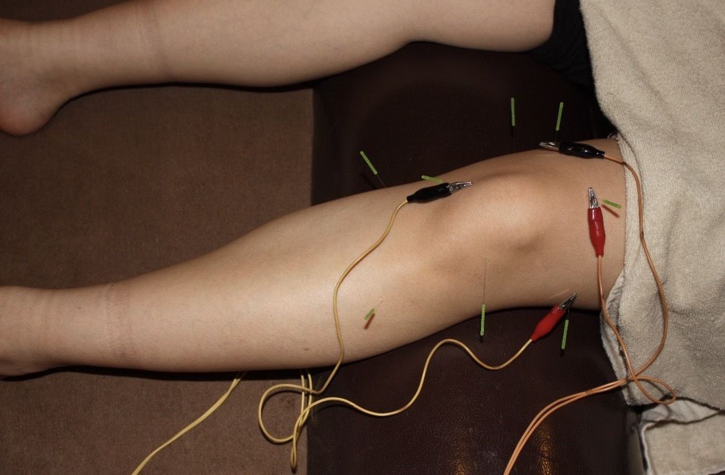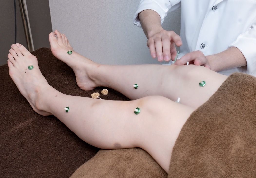 膝周囲の循環改善と全身調整を目的に鍼施術を実施。
